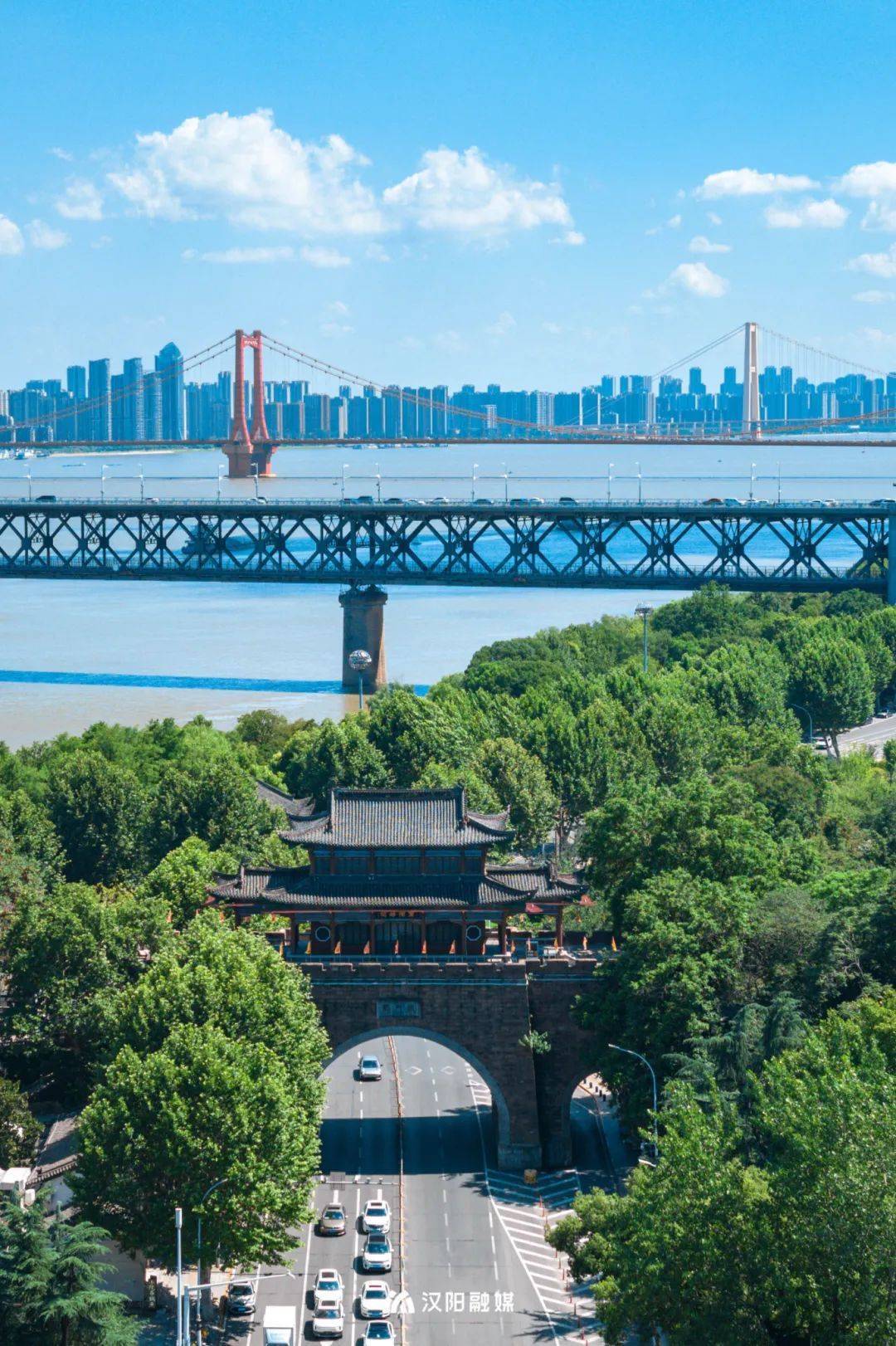 这是“龟蛇锁大江”的当代演绎