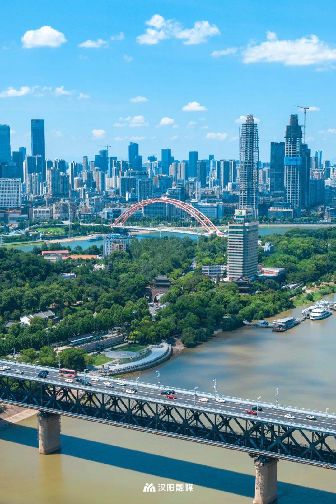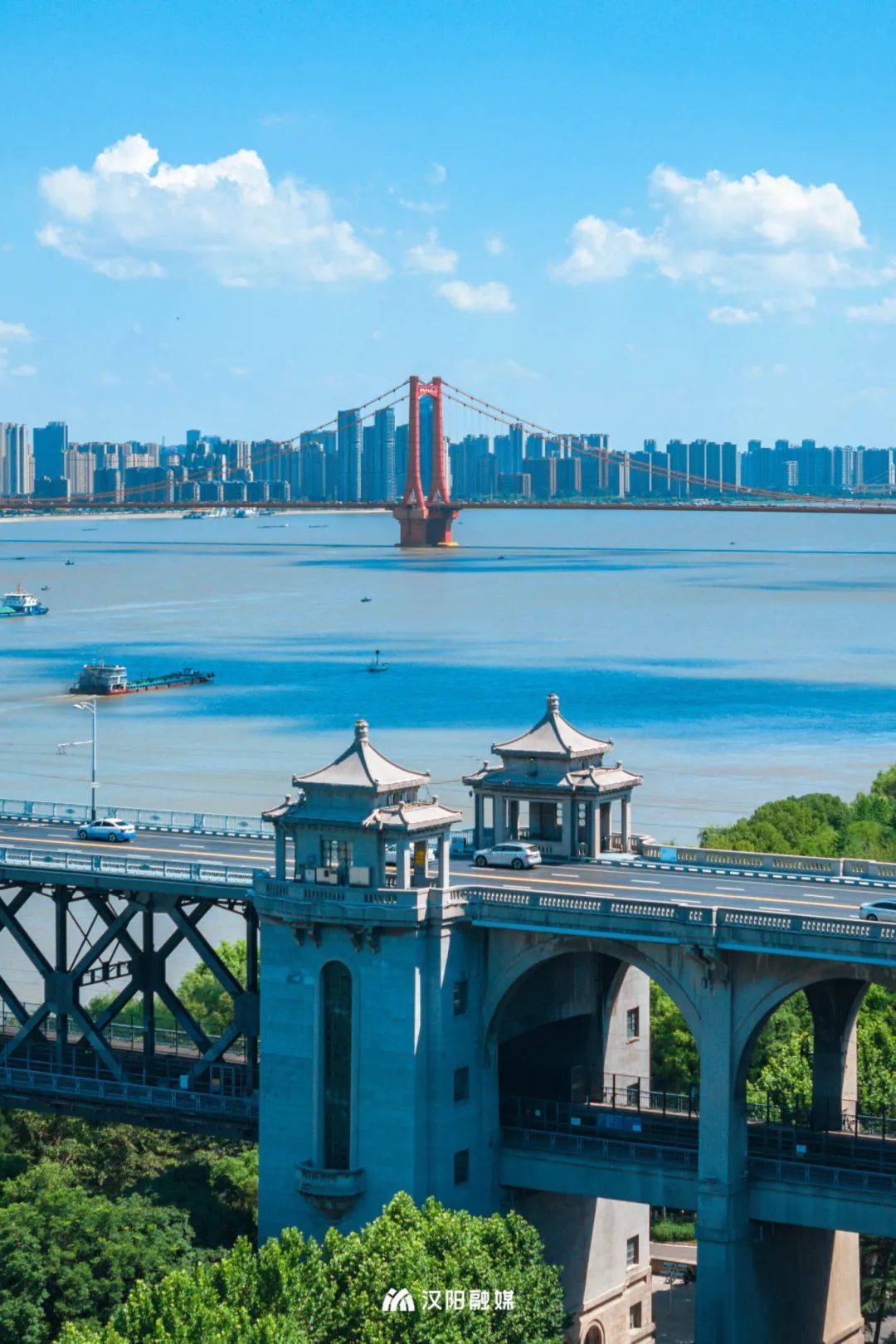 与晴川桥的赤色交相辉映