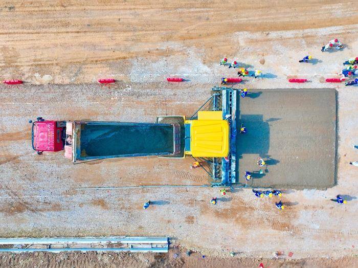 罗鹿高速第3标段项目进入路面施工阶段。中国一冶供图